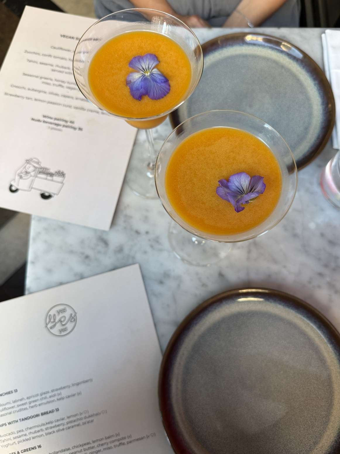Ko prideva iz muzeja, je zunaj zelo vroče poletje. Spet se počutim slabo, in če ne bi imeli rezervirane mize v Yes, bi šla naravnost spat. V lokalu se smejijo od sreče, kakšno čudovito poletje imajo letos. Ena pove, da je naredila že vse kljukice na svojem ‘summer to do list’. V Muziki pa dežuje in je 20 stopinj, nisva na hladnem severu? Glavni kuhar /lastnik restavracije in avtor kuharskih knjig Richard McCormickin je pripravil dva menija, veganskega in vegetarijanskega. Lokal je velik in nabito poln, brez rezervacije ne dobiš mize. Res bi veliko zamudili, če ne bi prišli sem. Že koktejl je povedal vse: mango, čili, ingver in rakitovec. Helsinki so se nama v hipu zdeli kulinarično veliko bolj zanimivo mesto kot prejšnji večer. Nekako se zdi, da je za mesto običajna bolj fast food hrana ali pa fine dinning. Tistega vmes nisva našli.