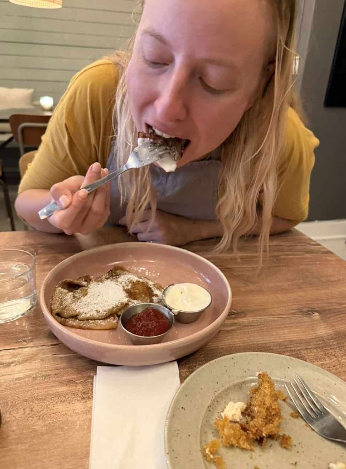 Čisto vsakdanje je, da se po ulici sprehaja moški v srednjeveških oblačilih, pred vhodom v mesto je postavljen tabor belih šotorov, kjer taborijo. Najdeva vegansko restavracijo Mirells, od koder se kar ne premakneva. Pri sosednji mizi sedi srednjeveška družina in pije priljubljeno filter kavo. Nikomur se to ne zdi nič posebnega, razen nama.